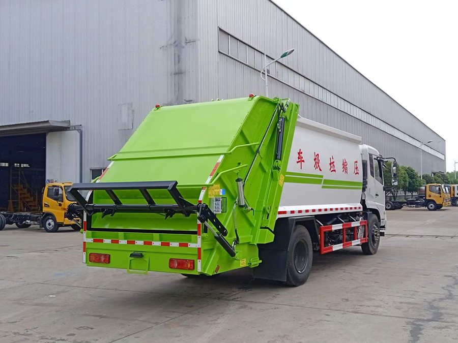 上裝配置:箱體有效容積14立方米,外觀為圓弧流線性造型,底板整體折邊無焊接,杜絕了泄漏風險。威森博樂多路閥,徐州全球通液壓油鋼管,多路閥處硬鏈接,整齊美觀,散熱快,工作效率高,標配壓實閥,有效增加垃圾密實度,增加裝載量。采用CAN總線智能控制系統(tǒng),具備手動、自動、半自動三套操縱方式,駕駛室內(nèi)部、箱體前部、箱體后部均可操作,并配備遠程遙控器,可全方位不同的作業(yè)環(huán)境,方便高效,尾部帶翻轉(zhuǎn)上料機構(gòu)。