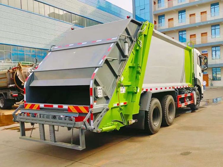 采用Q345錳鋼鋼板,新式弧形箱體,雙聯(lián)泵、背壓閥(壓實閥)、油路過濾器,無線遙控,倒車影像,可選掛桶翻轉機構,氣控密封蓋、三角斗、全密封大落地斗、擺臂裝置等。