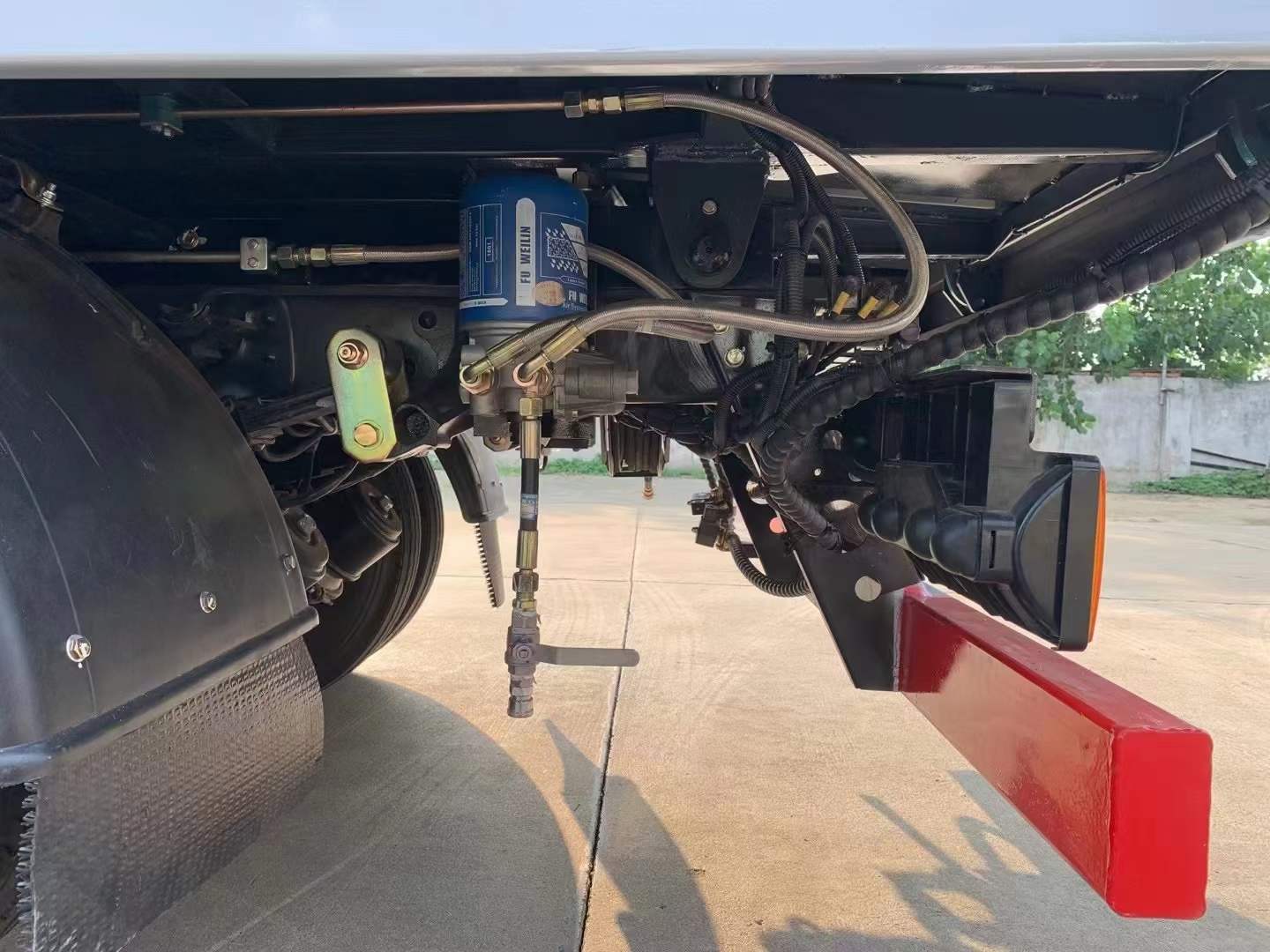 側防護采用Q235,螺栓連接;后防護采用Q235,焊接連接,后防護截面高度尺寸120mm,截面寬度尺寸50mm,下邊緣離地高度360mm;裝液壓制動系統時,ABS及其控制器型號/生產企業對應關系為::APG3550500A/浙江亞太機電股份有限公司,CM4YL/廣州瑞立科密汽車電子股份有限公司;裝氣壓制動系統時,ABS及其控制器型號/生產企業對應關系為:CM4XL-4S/4M/廣州瑞立科密汽車電子股份有限公司;該車專用裝置主要由箱體和吸塵系統組成,用于路面吸塵作業.