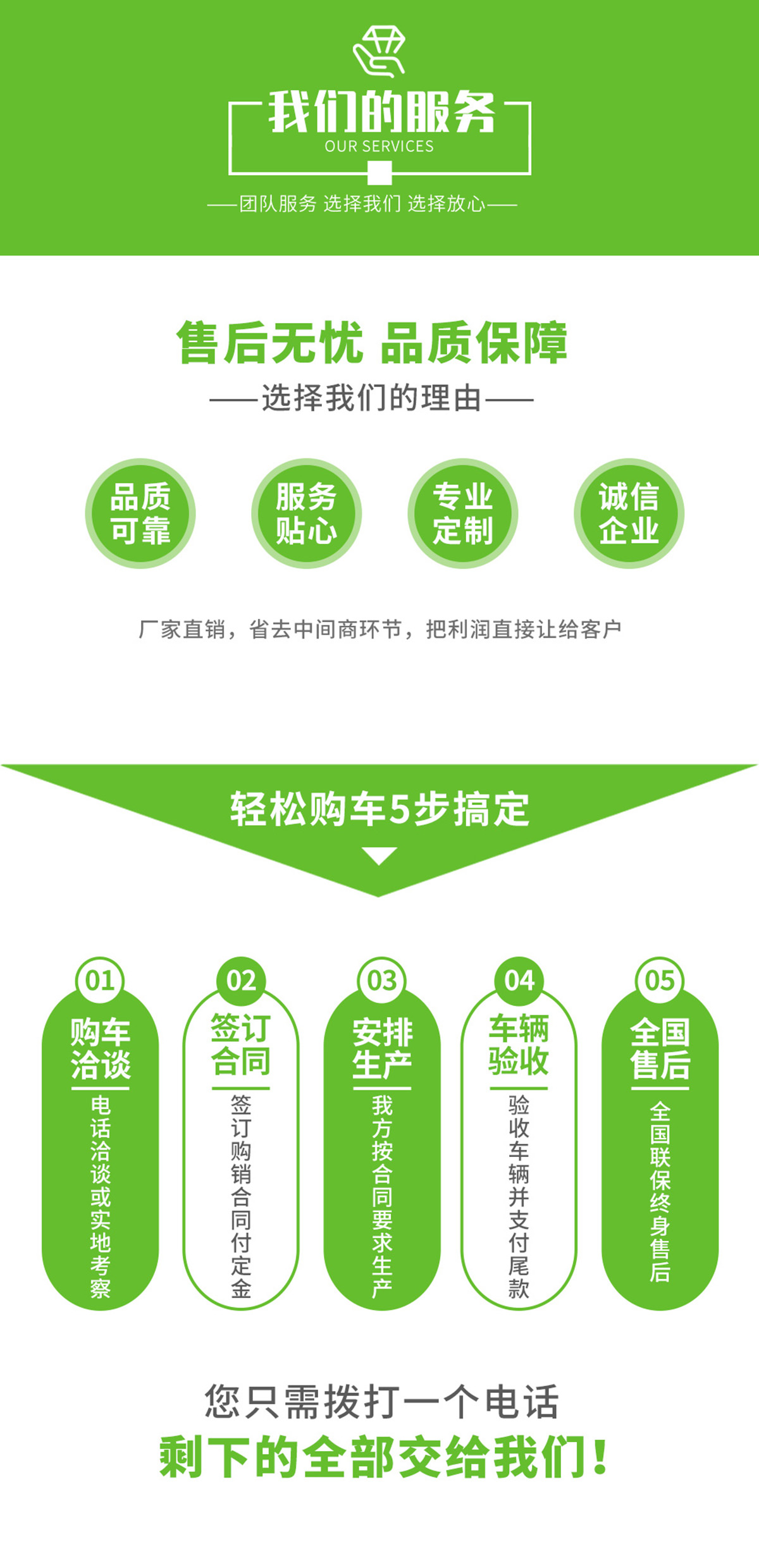 ·創(chuàng)優(yōu)質(zhì)服務(wù)企業(yè); 造用戶滿意產(chǎn)品; 樹國內(nèi)知名品牌!公司堅持以“質(zhì)量求生存、信譽求發(fā)展、科技創(chuàng)新路、服務(wù)創(chuàng)品牌”的經(jīng)營理念,以“誠信、務(wù)實、創(chuàng)新、進取”為企業(yè)宗旨,不斷提升自身產(chǎn)品質(zhì)量,開發(fā)適應(yīng)市場需求物美價廉的多功能專用汽車! 我們將謁誠為您提供更好、更快、更優(yōu)質(zhì)的服務(wù)!